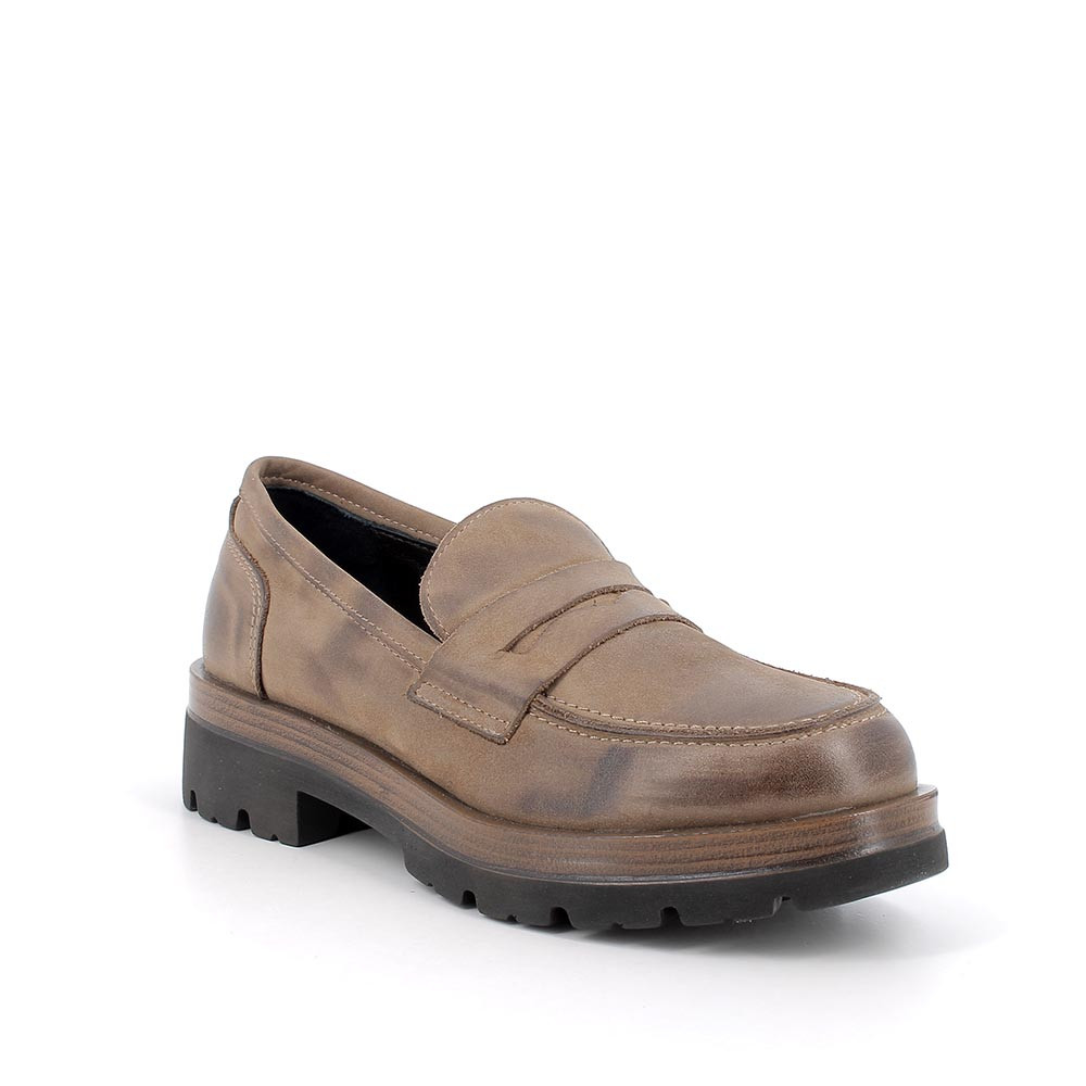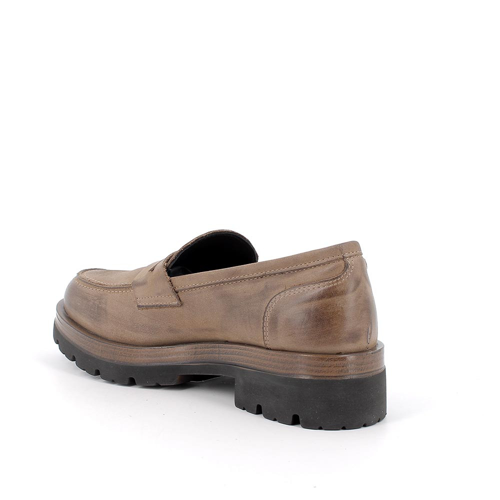 Mocassini con tacco in pelle da donna taupe