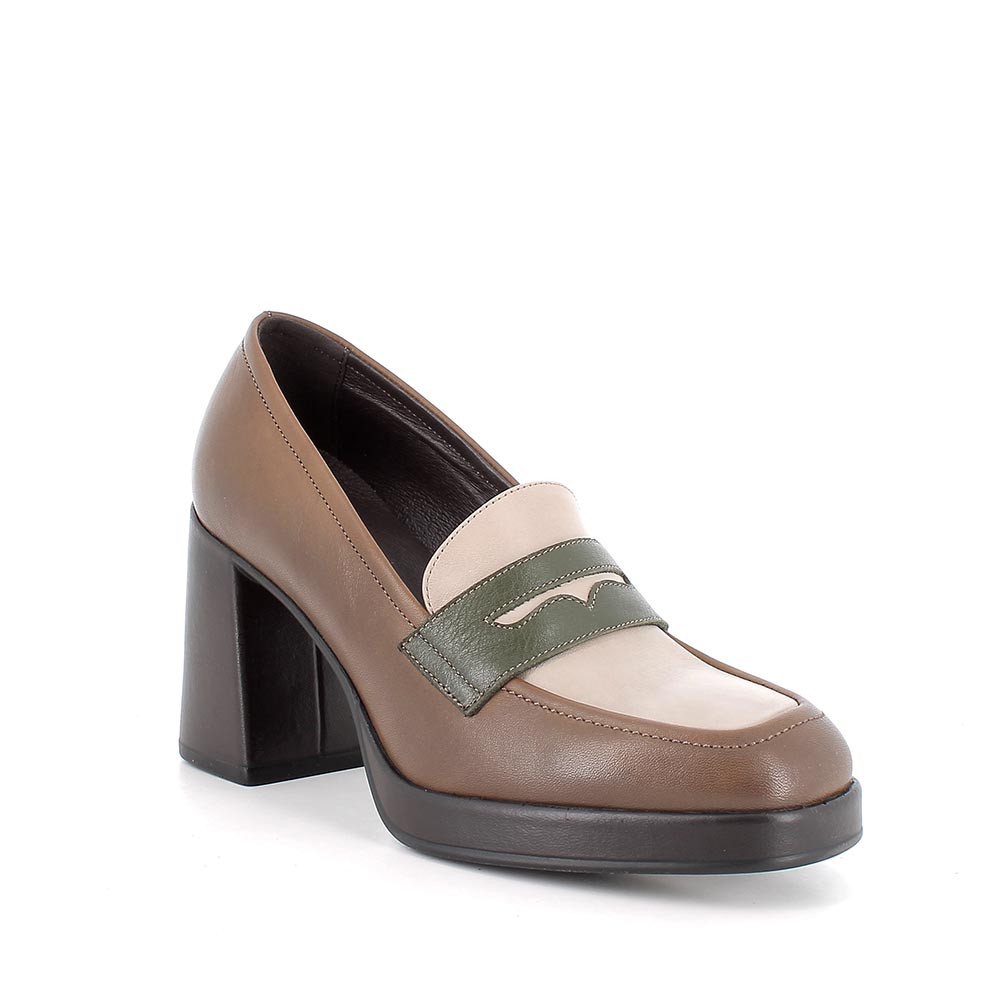 Mocassini con tacco in pelle da donna taupe-visone