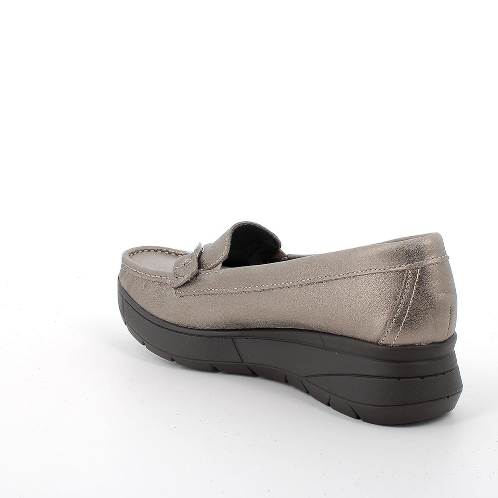 Mocassini con zeppa in pelle da donna bronzo