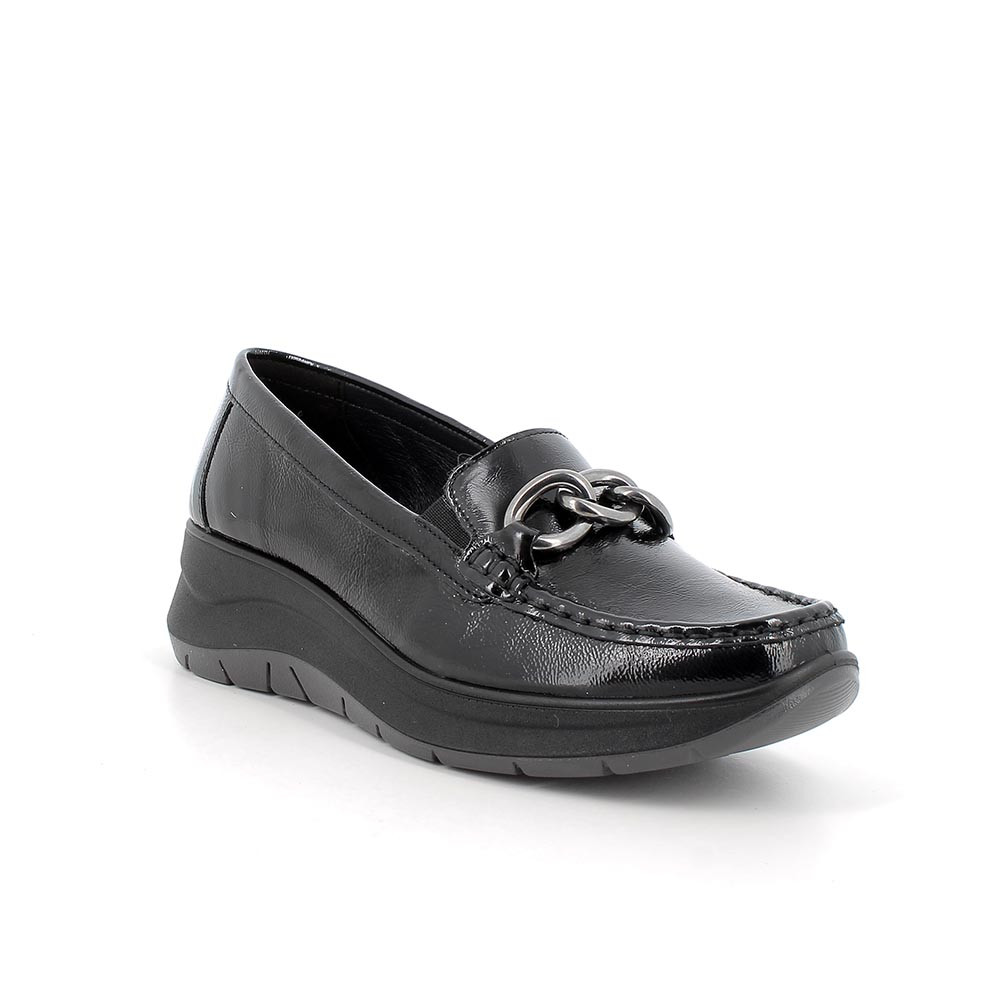 Mocassini con zeppa in pelle da donna nero