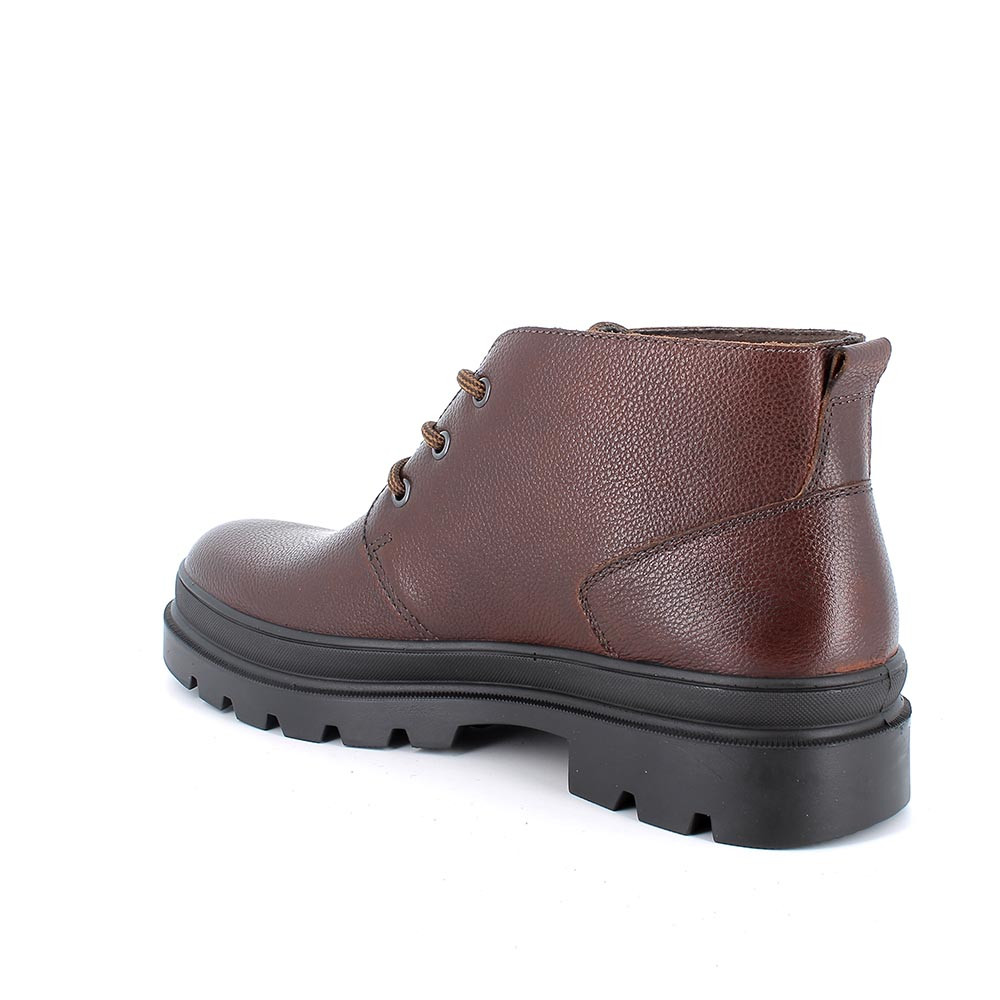 Polacchine uomo in pelle con suola carrarmato e fascione progettato per dare stabilità e comfort. Queste calzature sono dotate di un sottopiede estraibile in pelle.