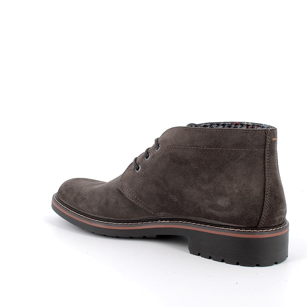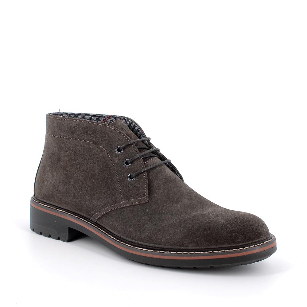 Polacchini stringati da uomo in pelle scamosciata foderati in caldo tessuto fantasia per un look più informale. Questi tronchetti sono scarpe versatili che si adattano bene ad ogni attività quotidiana ed avvolgono il piede senza costringerlo. La suola è estremamente leggera e sembrerà di non indossarli affatto. Il sottopiede anatomico è estraibile e rivestito in pelle per assicurare traspirabilità e igiene.