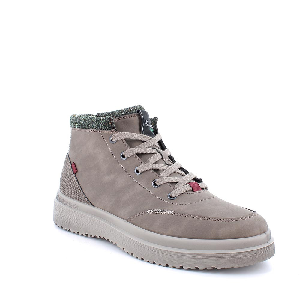 Scarpa stringata dal look sportivo ecosostenibile in pelle riciclata. Una sneaker dedicata ai più attenti alla sostenibilità, cha amano comunque vestire con stile. E' leggera, flessibile e dotata di suola realizzata con materiale prodotto utilizzando esclusivamente risorse rinnovabili. La fodera è in tessuto riciclato, il sottopiede è estraibile.