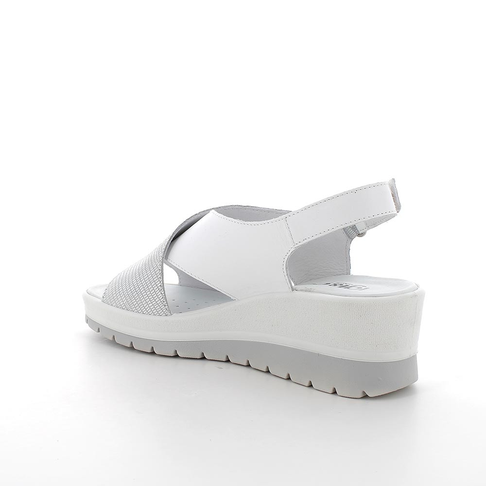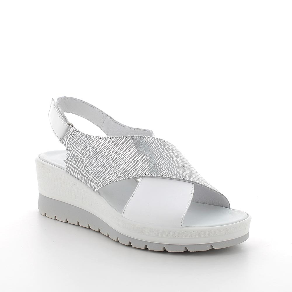 Sandali con zeppa da donna argento e bianco con strap