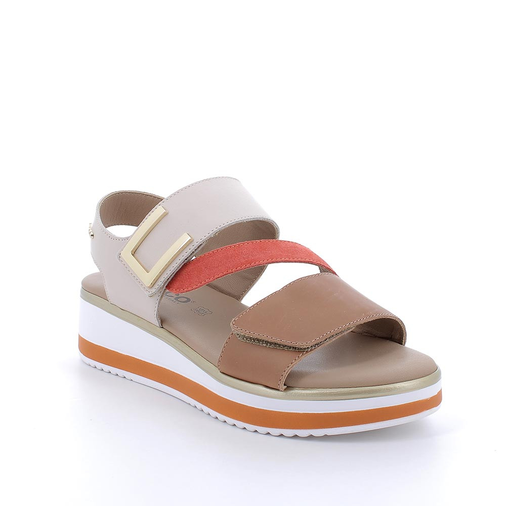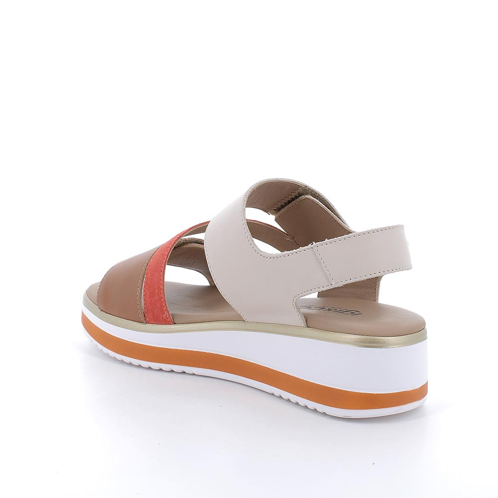 Sandali con zeppa da donna beige e bianco con strap
