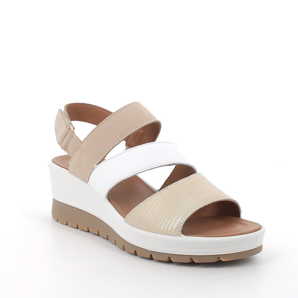 Sandali dalla silhouette evergreen realizzati in pelle morbidissima con fasce intrecciate e chiusura velcro. Il sottopiede in pelle offre un appoggio asciutto, sano e piacevole. La suola a zeppa, particolarmente leggera, dona slancio alla gamba e garantisce comfort per tutto il giorno.