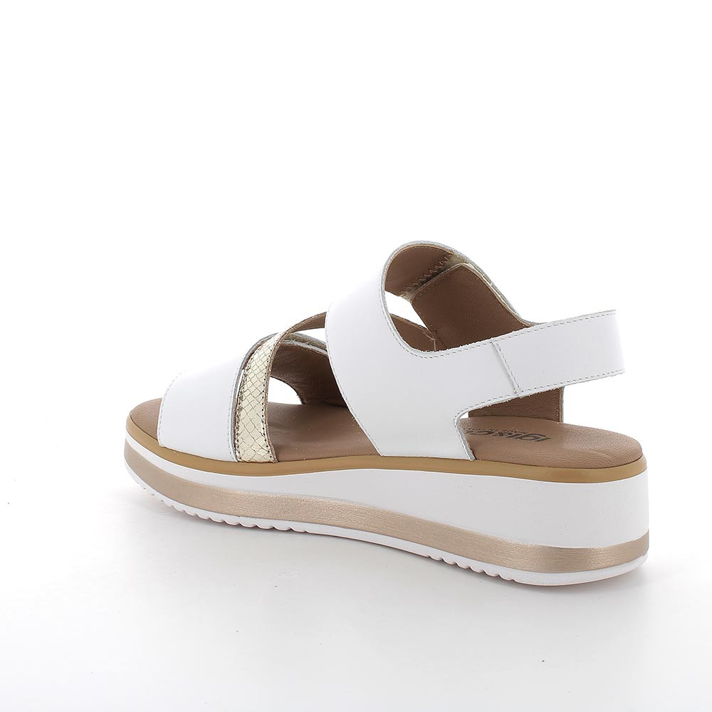 Questi sandali hanno una tomaia ed una suola dal design essenziale e contemporaneo. La possibilità di doppia regolazione li rende adattabili a qualsiasi piede e la leggerezza della suola a zeppa previene qualsiasi sensazione di affaticamento. Sulla fascia è applicata una fibbia che regala un particolare appeal, pur mantenendo sobrietà e stile. Queste calzature si adatteranno facilmente ad ogni tuo outfit estivo.