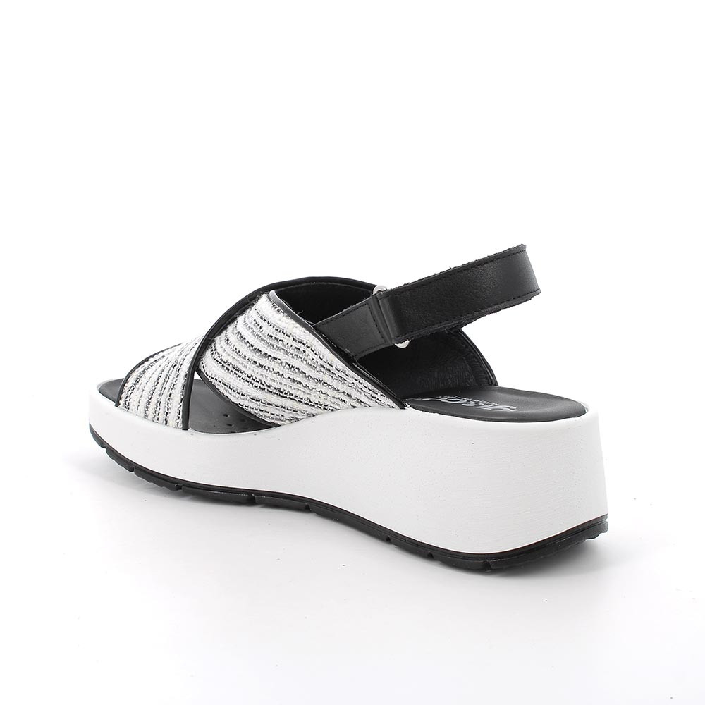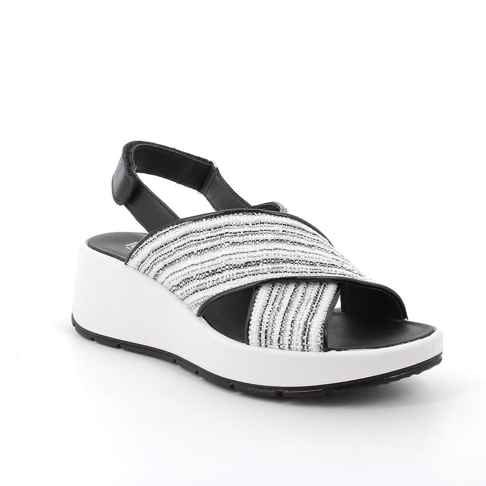 Sandali con zeppa da donna bianco e nero con strap