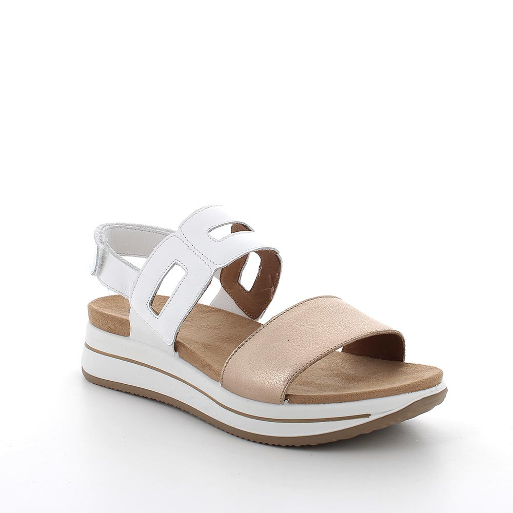 Sandali con zeppa da donna bianco e platino con strap