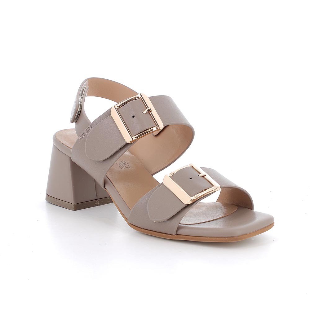Sandali con tacco da donna grigio e beige con strap