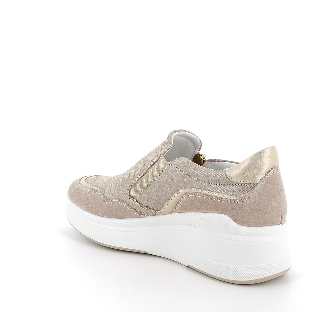 Slip on con zeppa da donna beige e platino con zip