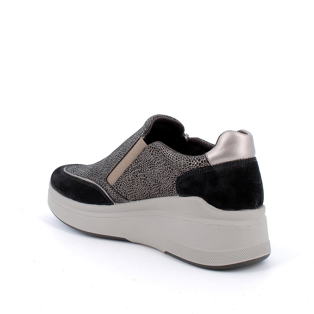 Slip on con zeppa in pelle da donna nero-bronzo