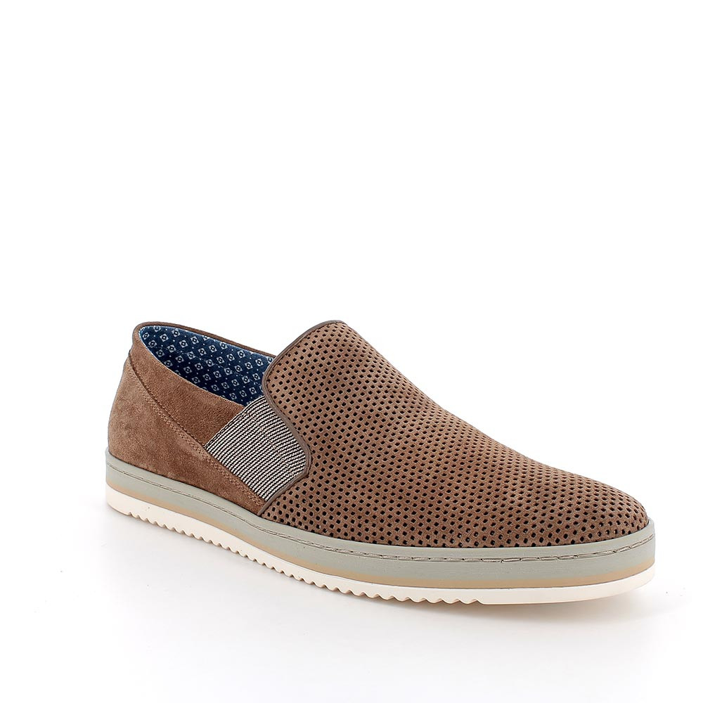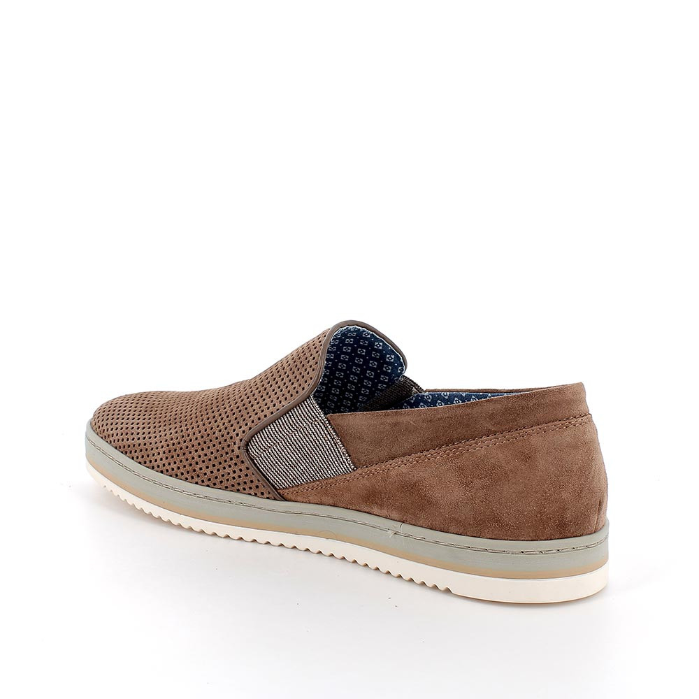 Le scarpe slip on da uomo sono un'opzione molto comoda che permette di infilarle e sfilarle rapidamente. Gli inserti elastici rendono anche più piacevole indossarle per tutta la giornata. Queste calzature sono realizzate in pelle ed hanno un design semplice e lineare. La suola, leggera e flessibile, dona carattere e personalità. Il sottopiede anatomico è estraibile e rivestito in pelle per assicurare traspirabilità e igiene.