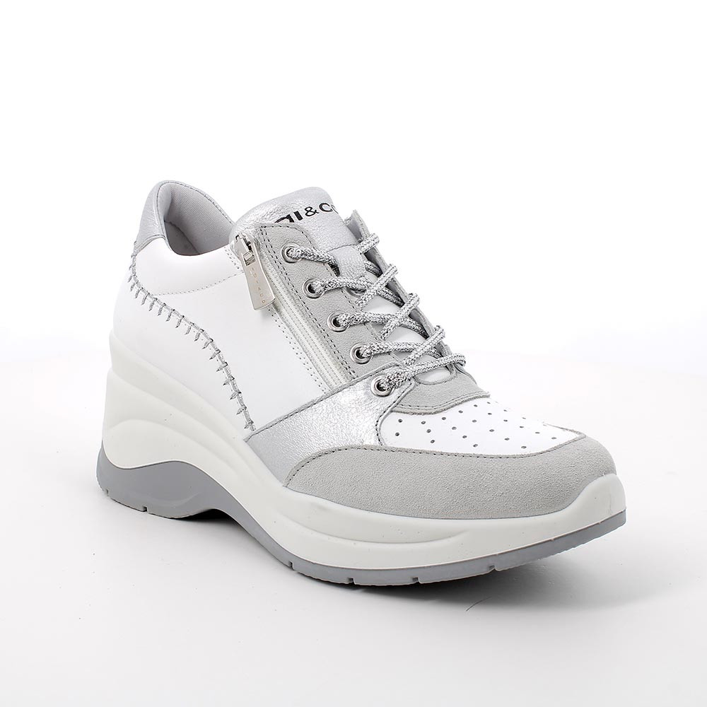 La personalità di queste sneakers da donna si percepisce al primo sguardo. Sono realizzate in un mix di materiali di qualità e si abbinano bene ad ogni genere di outfit. La particolare leggerezza e flessibilità della suola a zeppa non sempre si riscontra in scarpe sportive di questo tipo. La zip laterale caratterizza il prodotto ne fa un elemento ornamentale e funzionale. Il plantare estraibile in memory foam è rivestito in pelle e assicura ammortizzazione proteggendo il piede dalle sollecitazioni.