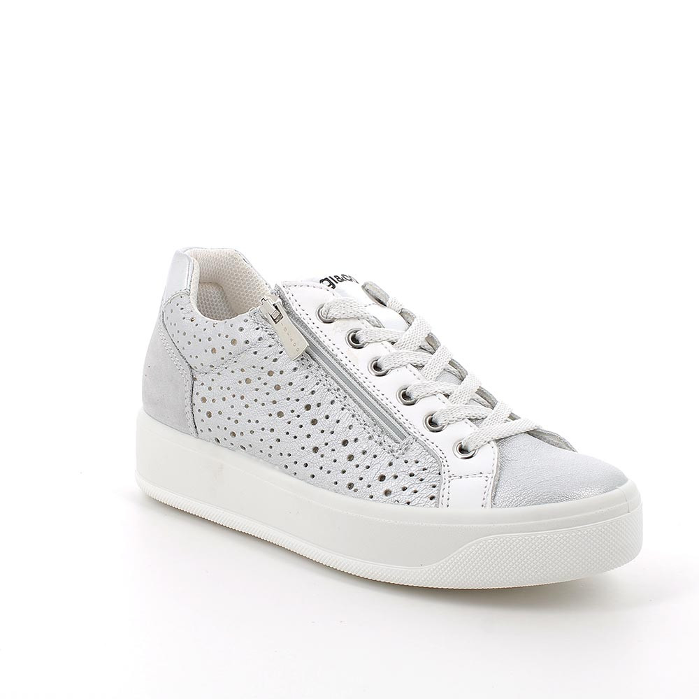 Sneakers da donna argento e bianco con zip