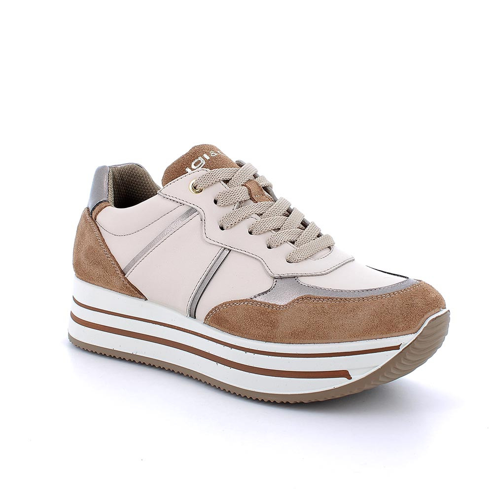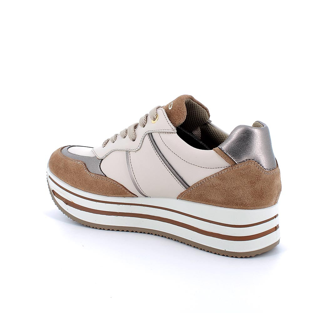 Sneakers per una donna che in inverno sceglie la sobrietà senza mancare di stile. Queste scarpe in pelle sono un prodotto trasversale che completa facilmente sia outfit formali che disinvolti. Dotate di una leggerissima suola a zeppa, regalano centimetri in più senza stancare il piede e possono essere indossate anche per molte ore. Il sottopiede anatomico è estraibile e rivestito in pelle per assicurare traspirabilità e igiene.