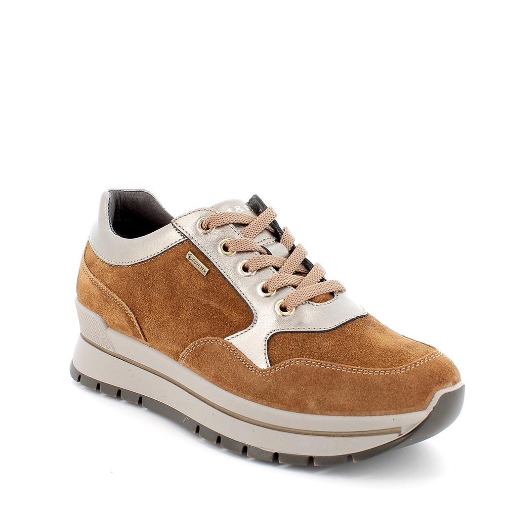 La donna che cerca una sneaker dal comfort inedito e dalle elevate prestazioni può trovarle in questo modello. La tomaia in scamosciato si accompagna ad una fodera Gore-Tex che regala massima traspirazione e isolamento dall'umidità. Una scarpa da indossare da mattina a sera perchè dotata anche di una leggerissima suola sportiva. Il plantare estraibile in memory foam è rivestito in pelle e assicura ammortizzazione proteggendo il piede dalle sollecitazioni.