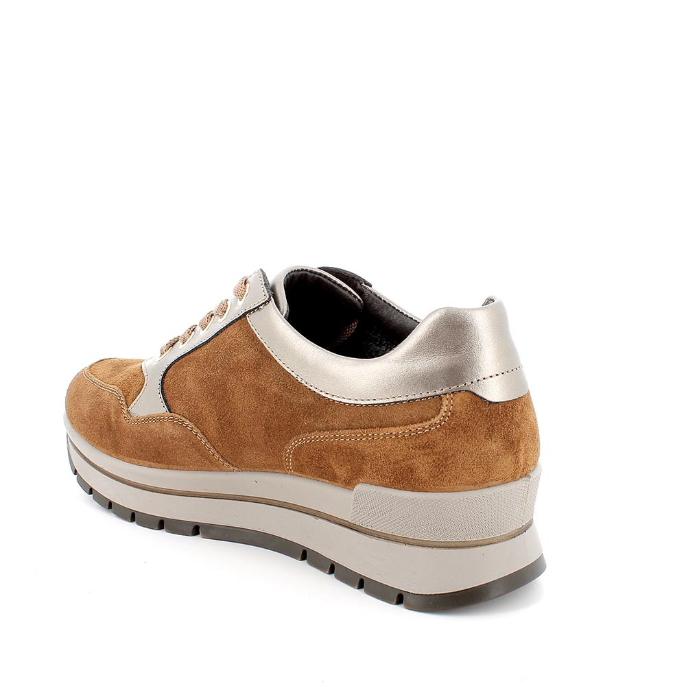 Sneakers con zeppa in pelle da donna cognac