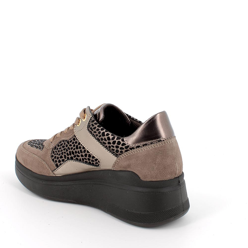 Sneakers con zeppa in pelle da donna fango