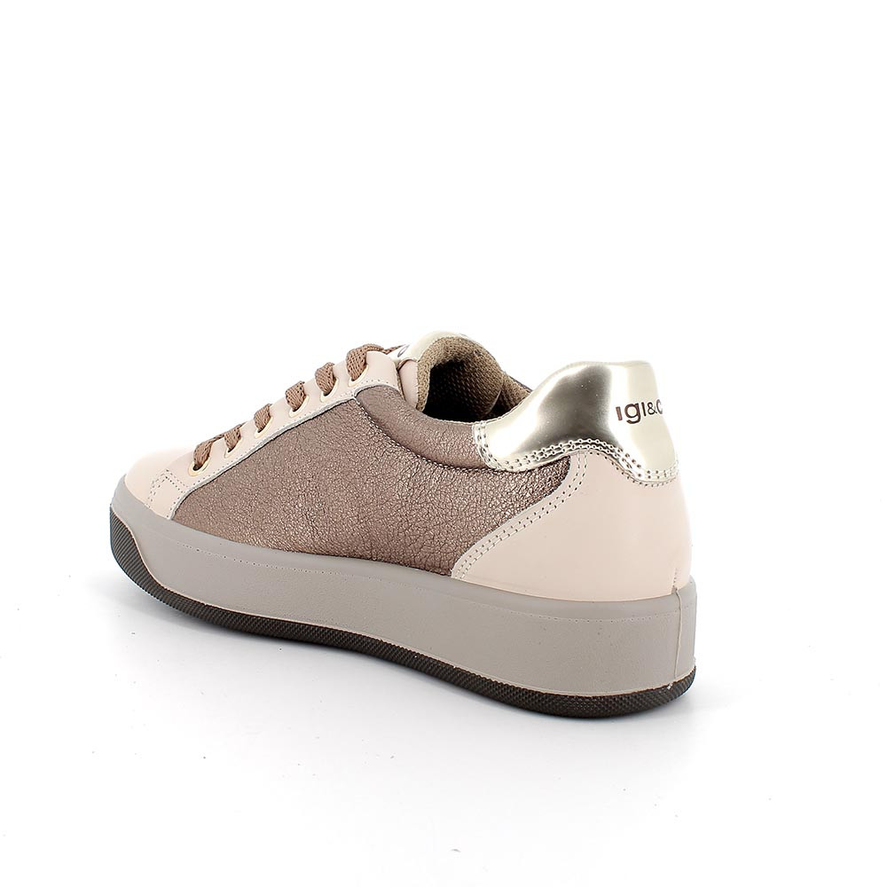 Sneakers in pelle da donna écru-marrone laminato