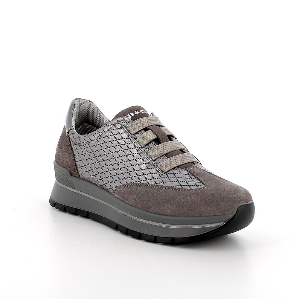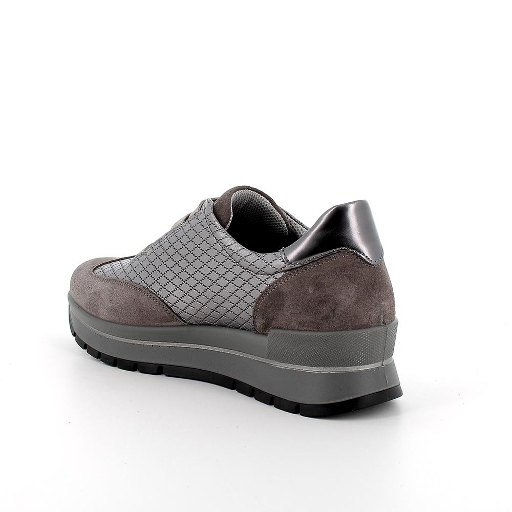 Sneakers in pelle da donna grigio laminato-grigio