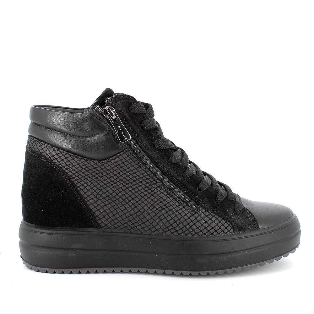 Le sneakers alte da donna sono una scelta perfetta per l'inverno. Queste scarpe dotate di zeppa interna permettono un ottimo isolamento dal terreno e contemporaneamente regalano slancio alla gamba. Possono essere indossate velocemente grazie alla zip esterna, senza slacciarle. Le imbottiture alla caviglia offrono sostegno e protezione dal freddo. Il sottopiede anatomico è estraibile e rivestito in pelle per assicurare traspirabilità e igiene.
