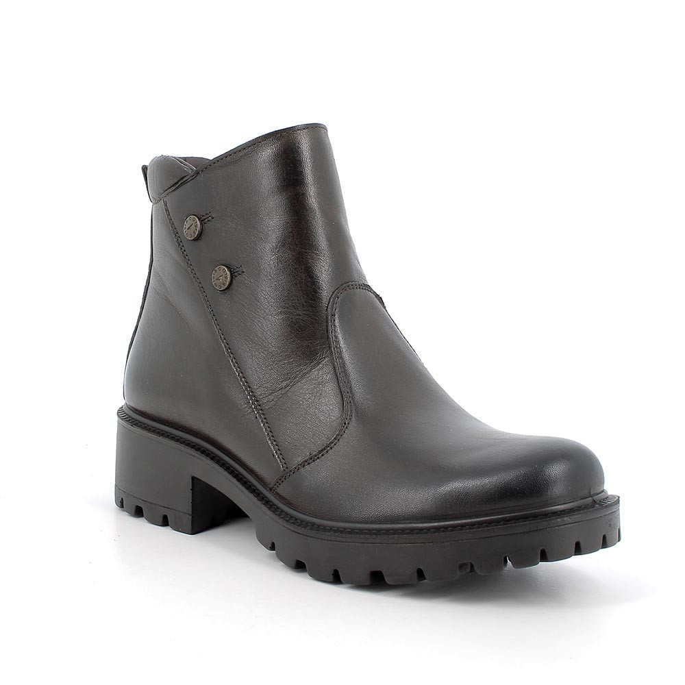 Stivaletti da donna con tagli asimmetrici e bottoni metallici laterali. Adatti a degli outfit casual hanno zip interna ed una piccola imbottitura posteriore che migliora il comfort. La suola a carrarmato garantisce isolamento e trazione, ma è allo stesso tempo molto leggera. Il sottopiede estraibile è rivestito in pelle.