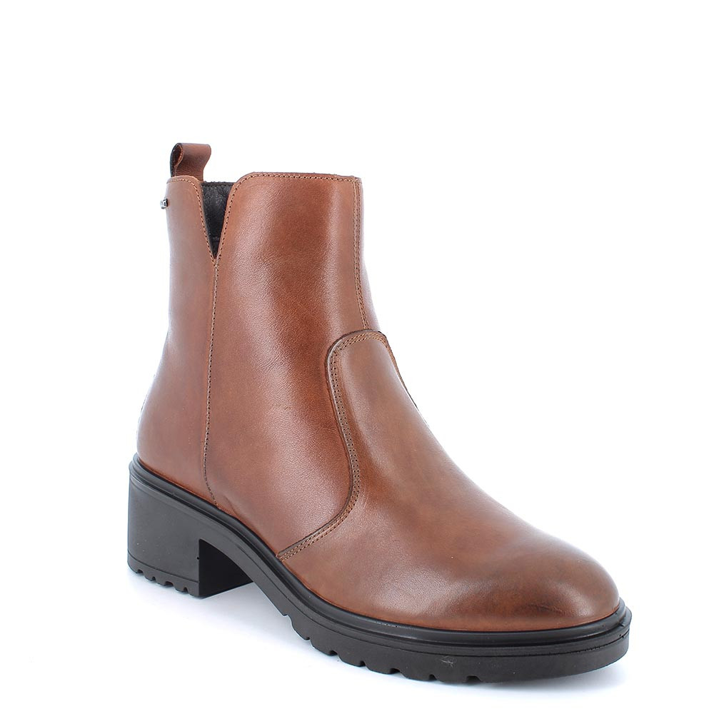 Stivaletti alti di pelle, con tacco. Chiusura zip e tirante sul retro per una pratica calzata. Sottopiede estraibile in pelle. Look city, adatto in ufficio ma anche per un aperitivo con gli amici.