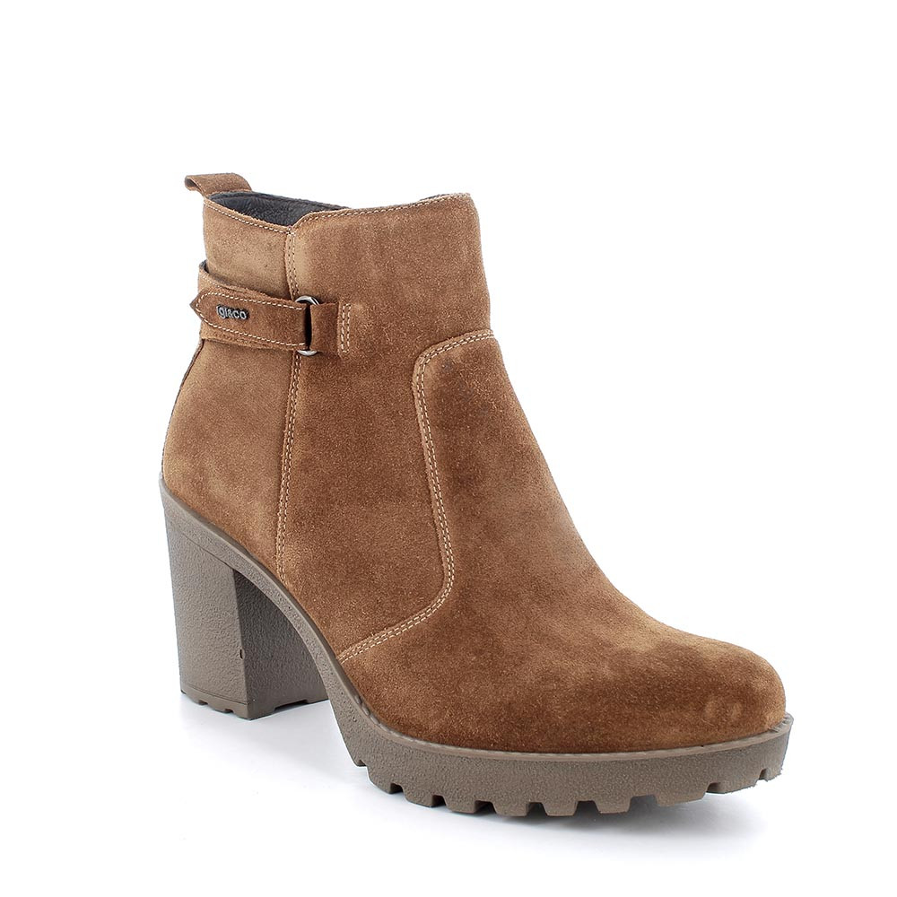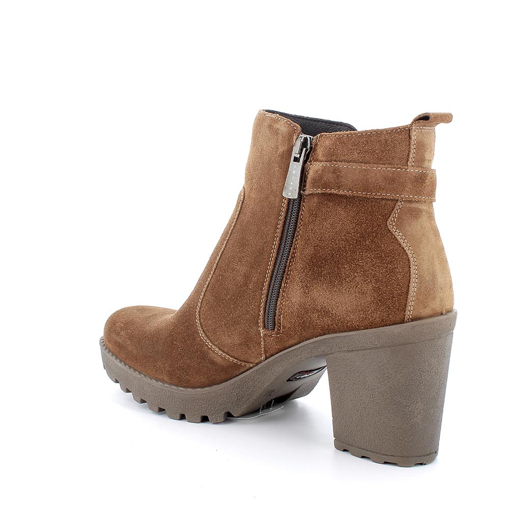 Stivaletti con tacco in pelle da donna cognac