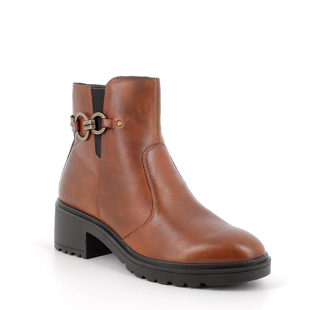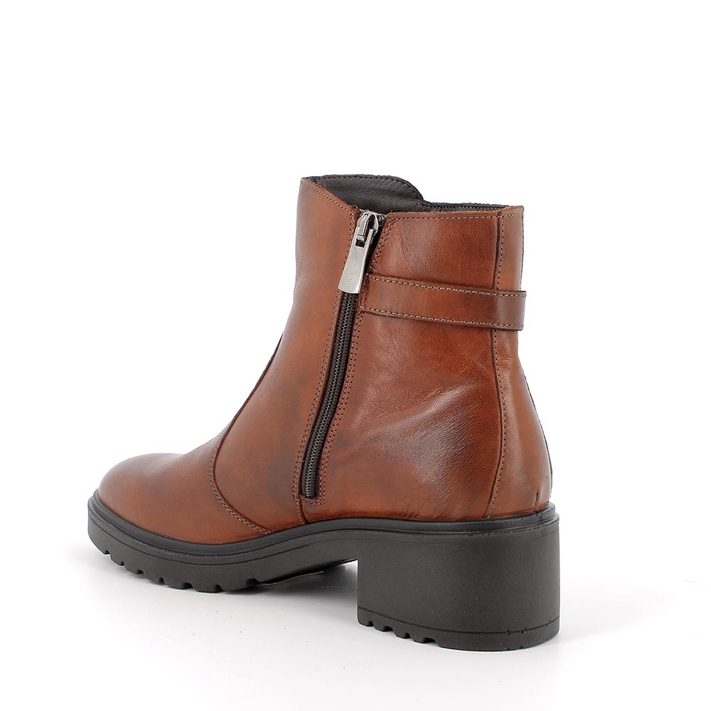 Stivaletti alti alla caviglia con tacco, in pelle. Zip di chiusura e fibbia ornamentale. Sottopiede estraibile in pelle. Adatto a tutte le occasioni dal casual chic al quotidiano.