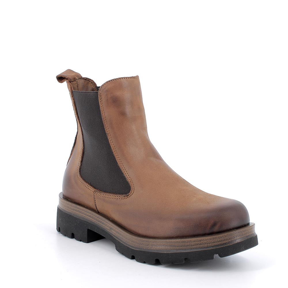 Stivaletti con tacco in pelle da donna cuoio