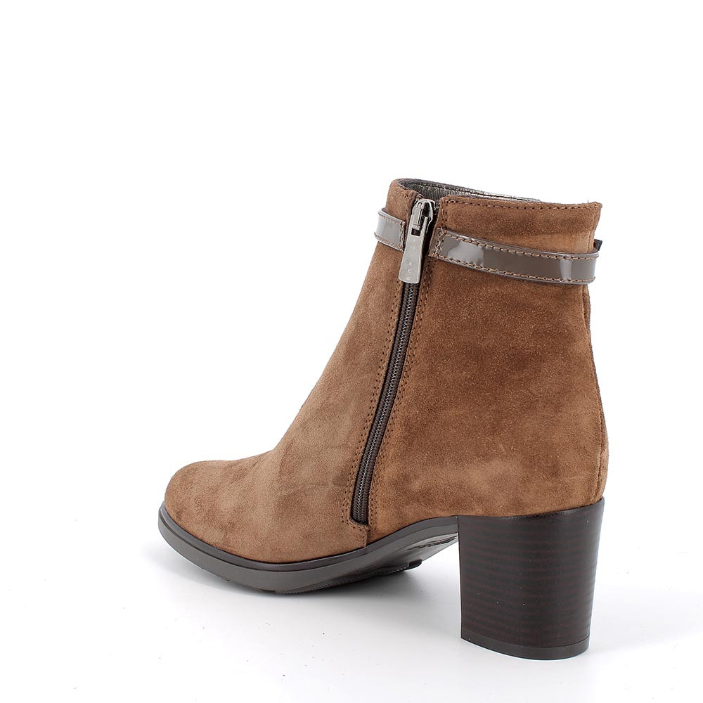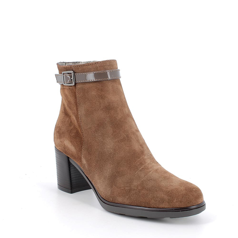 Stivaletti di morbida pelle con tacco. Disinvolti, da indossare in ufficio o in una serata con gli amici. Zip laterale e fibbia ornamentale lo rendono comodo ed elegante al tempo stesso. Sottopiede estraibile in pelle per massima igiene.
