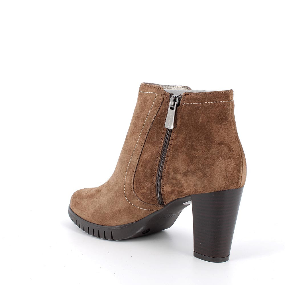 Stivaletto in pelle, alto alla caviglia. Look femminile e disinvolto grazie al tacco largo stabile. Chiusura zip e sottopiede in pelle, contribuiscono alla trasversalità e qualità di questo articolo.