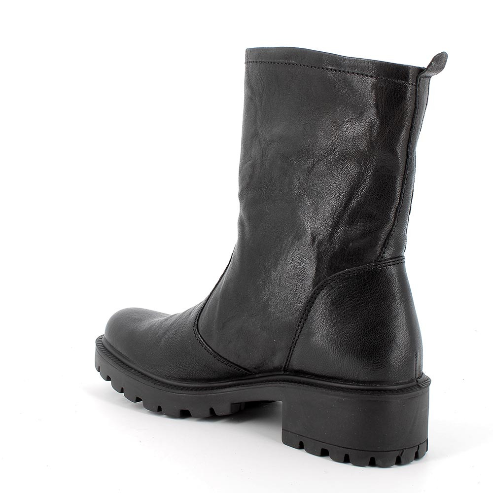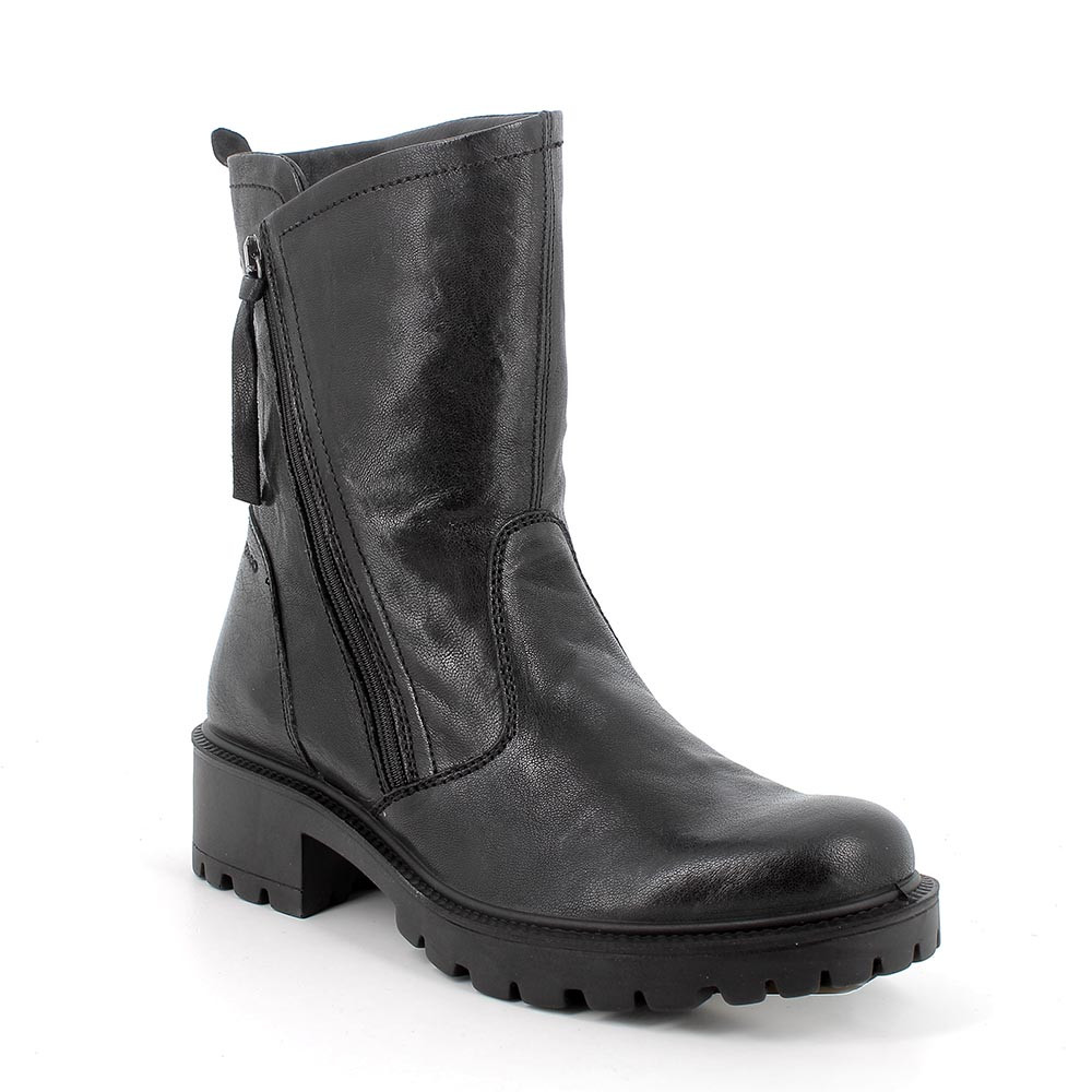 Stivaletti donna realizzati in morbida in pelle e dotati di zip laterale e tirante sul retro per poterli calzare velocemente. Queste scarpe sono notoriamente versatili e grintose e si prestano ad essere indossate sia con outfit ricercati che con dei semplici jeans. La loro particolarità risiede nella suola di spessore, che però risulta leggerissima ed estremamente confortevole. Caratteristica non sempre riscontrabile in questo tipo di calzature. Il sottopiede anatomico è estraibile e rivestito in pelle per assicurare traspirabilità e igiene.