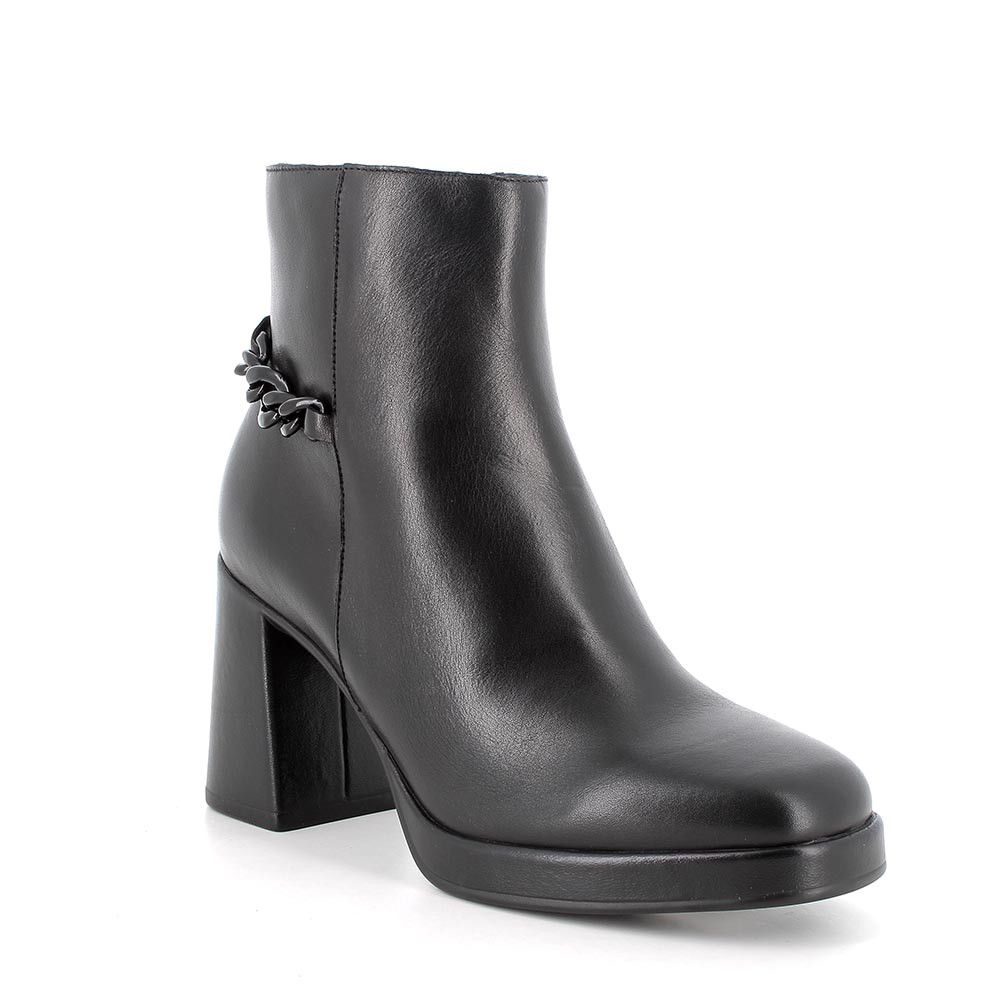 Stivaletti con tacco in pelle da donna nero