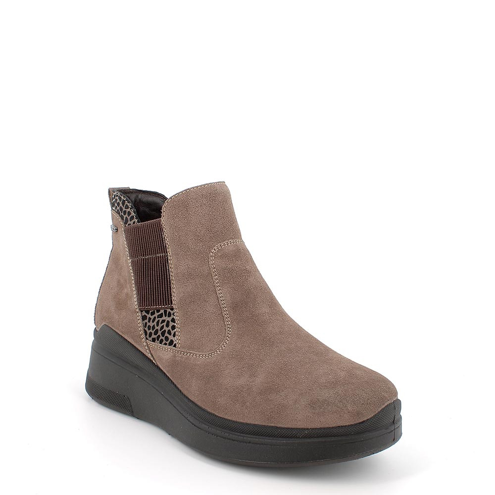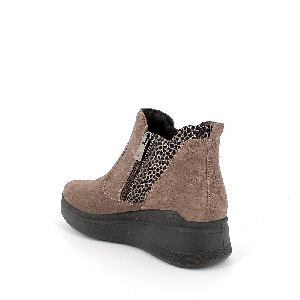 Stivaletti da donna alla caviglia realizzati in pelle scamosciata con dettagli animalier. Il dettaglio di stile della fascia elastica è anche elemento funzionale e rende più agevole destreggiarsi tra gli impegni quotidiani. La suola è importante e regala centimetri in più, ma è anche leggerissima e non ostacola i movimenti. Il sottopiede anatomico è estraibile e rivestito in pelle per assicurare traspirabilità e igiene.