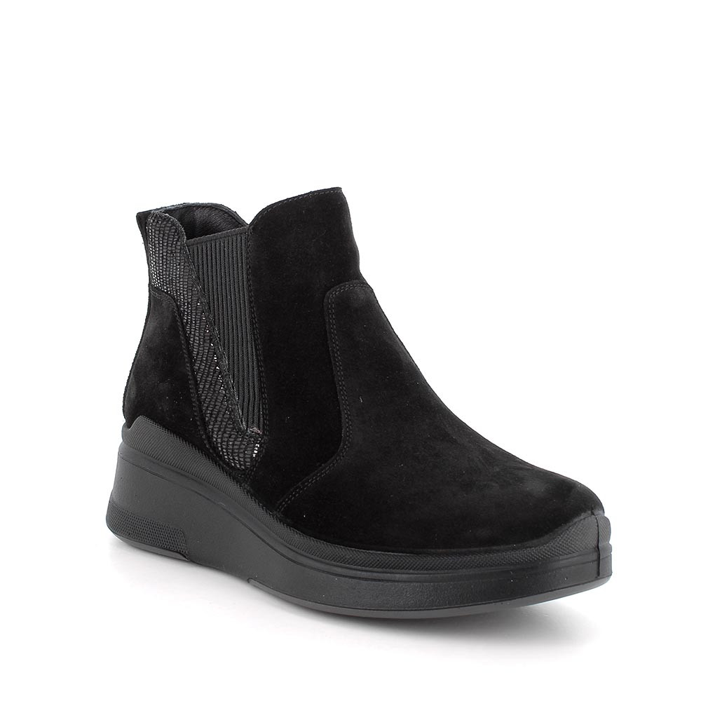 Stivaletti con zeppa in pelle da donna nero-nero laminato