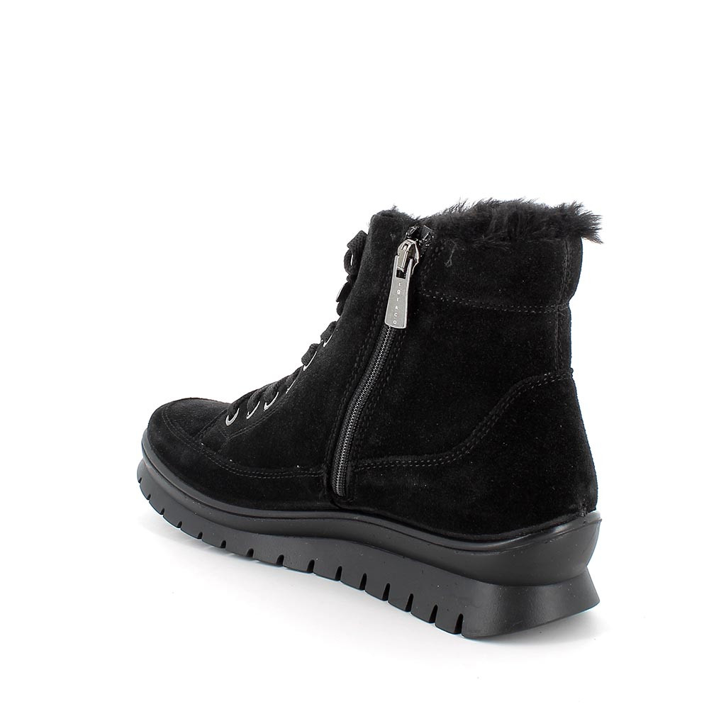 Gli scarponcini donna più adatti all'inverno sono in pelle e realizzati con tecnologia GORE-TEX. In questo modo il piede è protetto da freddo e umidità, ma respira liberamente. Questi tronchetti hanno una suola leggermente a zeppa che offre comodità e supporto nella camminata per tutto il giorno. Sono anche pratici da indossare grazie alla zip. Il sottopiede anatomico è estraibile e rivestito in pelle per assicurare traspirabilità e igiene.