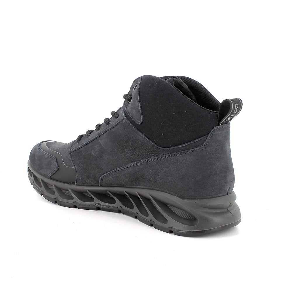 Sneakers allacciate alte, impermeabili e traspiranti dotate di fodera GORE-TEX. Questa calzature dal gusto sportivo, sono un must per l'inverno. La suola dal design futuristico è resa ancora più leggera dagli incavi lungo tutto il profilo. Il plantare estraibile in memory foam è rivestito in pelle e assicura ammortizzazione proteggendo il piede dalle sollecitazioni.