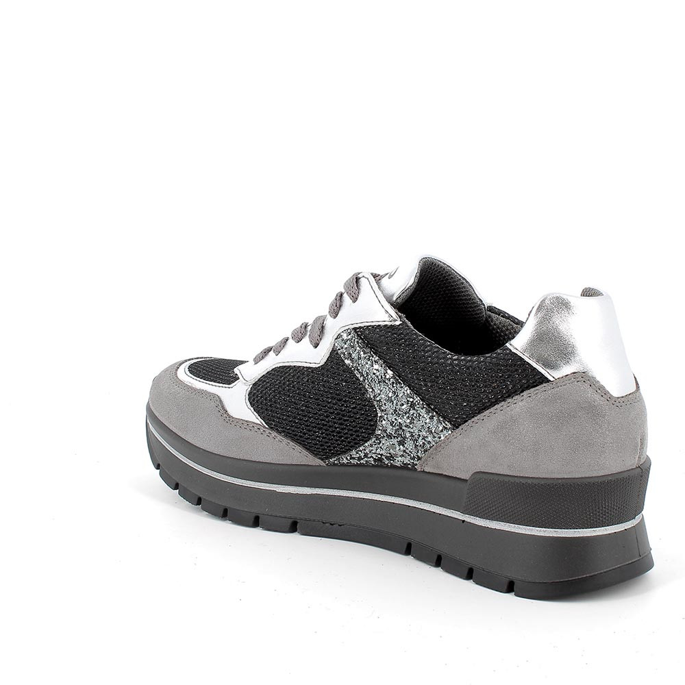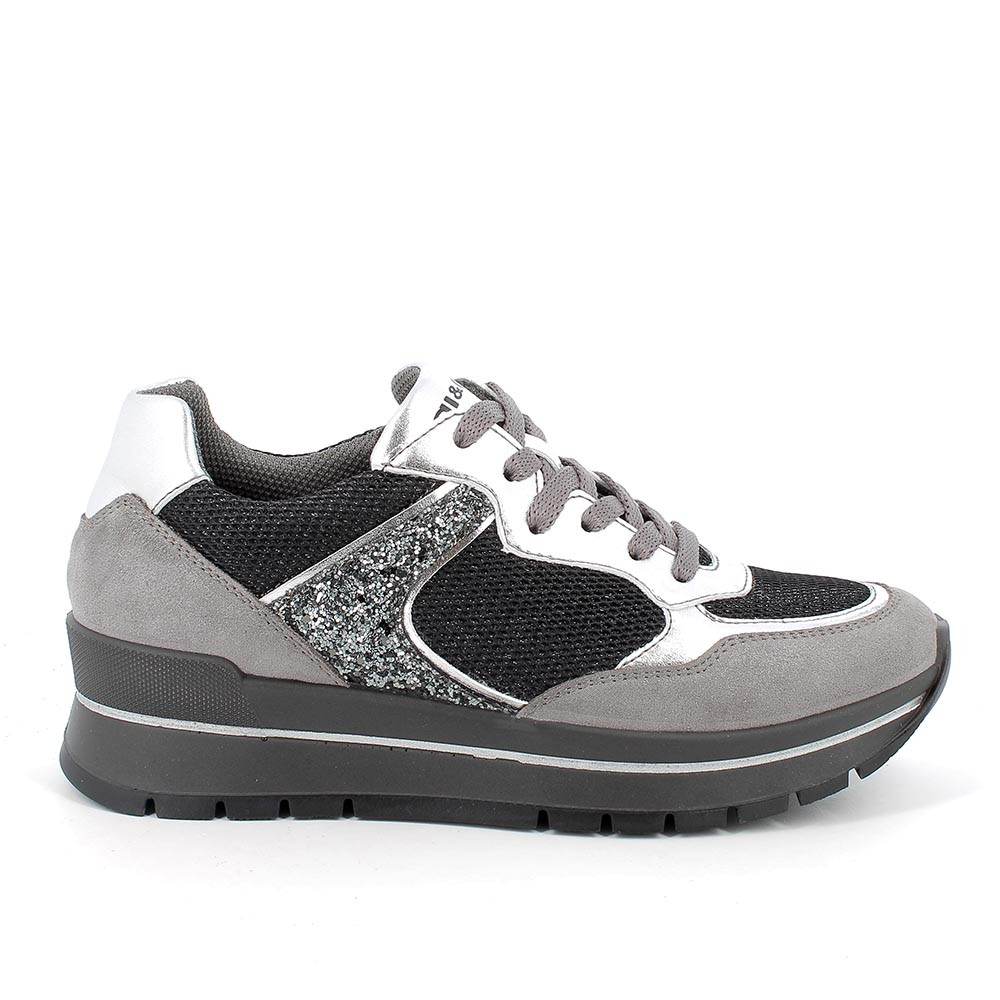 Queste sneakers realizzate in un mix di pelle e materiali glitterati si prestano a diventare protagoniste della stagione. La suola a zeppa, oltre ad essere attualissima, offre un ottimo isolamento termico. Gli intagli sul battistrada ne assicurano anche la flessibilità. La fodera è pensata in morbido tessuto tecnico, per garantire un ambiente caldo e confortevole. Il plantare estraibile in memory foam è rivestito in pelle e assicura ammortizzazione proteggendo il piede dalle sollecitazioni.