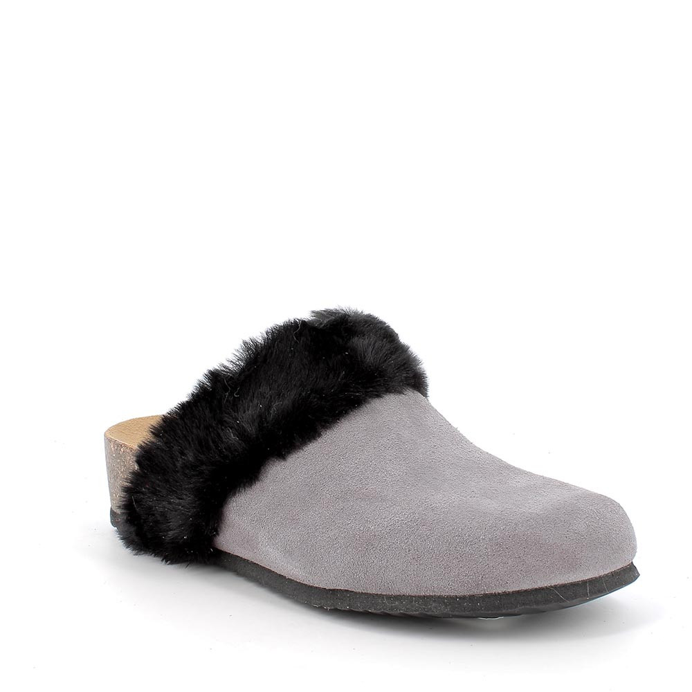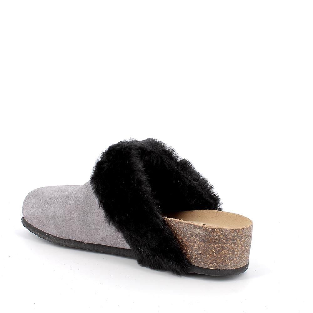 Pantofola modello sabot con pelliccia per tenere il piedi maggiormente al caldo. Il design di questa calzatura è classico ed elegante. Il plantare in memory foam è rivestito in pelle scamosciata e ricalca la naturale impronta del piede sulla sabbia garantendo la comodità necessaria per tutto il giorno.