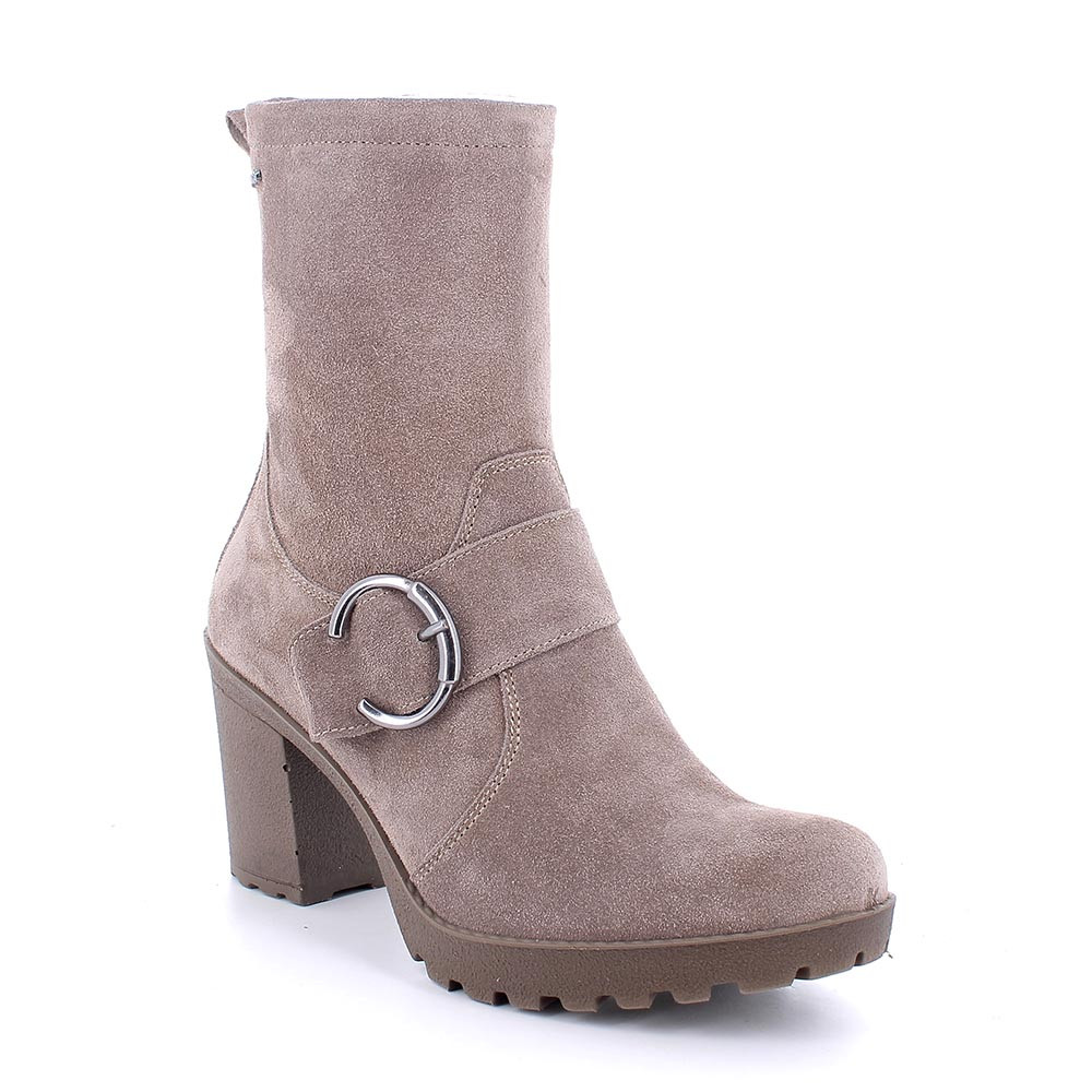 ЖЕНСКИЕ КОЖАНЫЕ САПОГИ НА КАБЛУКЕ, СЕРЫЙ