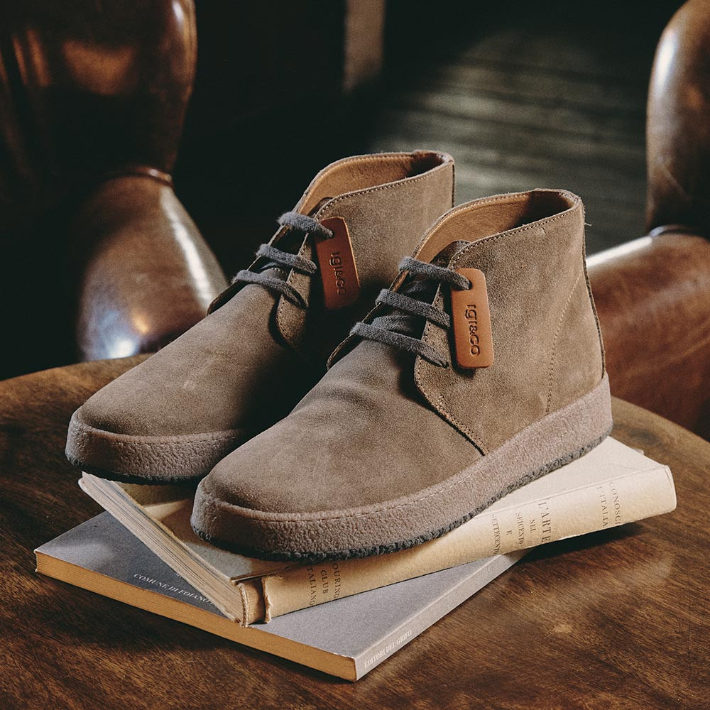 Ботильоны в стиле дезерт из мягкой замши. Подошва чашки придает современный вид. Подкладка изготовлена из кожи, как и стелька, которую можно снять и оставить сушиться на воздухе.