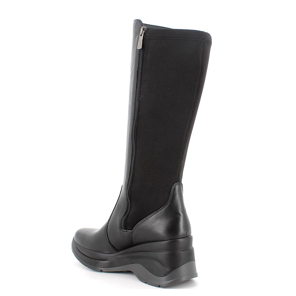 ЖЕНСКИЕ КОЖАНЫЕ САПОГИ НА ТАНКЕТКЕ, ЧЕРНЫЙ