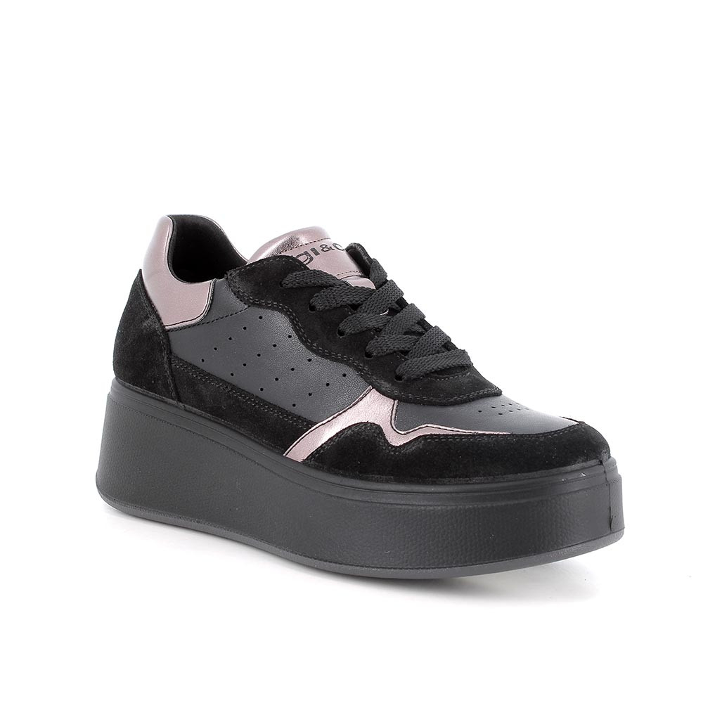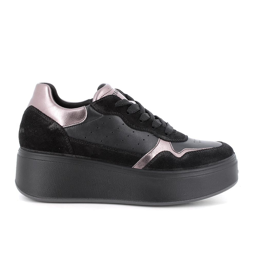 ЖЕНСКИЕ КОЖАНЫЕ КРОССОВКИ НА ТАНКЕТКЕ, ЧЕРНЫЙ