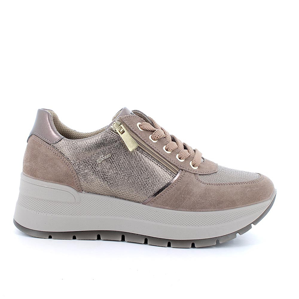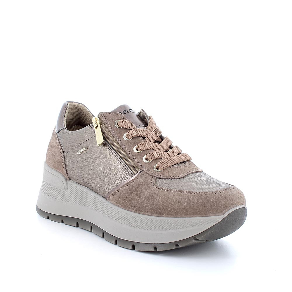Кроссовки с верхом из натуральной кожи стильного и спокойного дизайна. Они легко дополняют как формальные, так и непринужденные собразы. Очень легкая подошва на танкетке дает дополнительные сантиметры росту и не утомляют ногу, поэтому их можно носить в течение многих часов. Анатомическая съемная стелька из натуральной кожи обеспечивает воздухопроницаемость, что благоприятно для гигиены стопы.