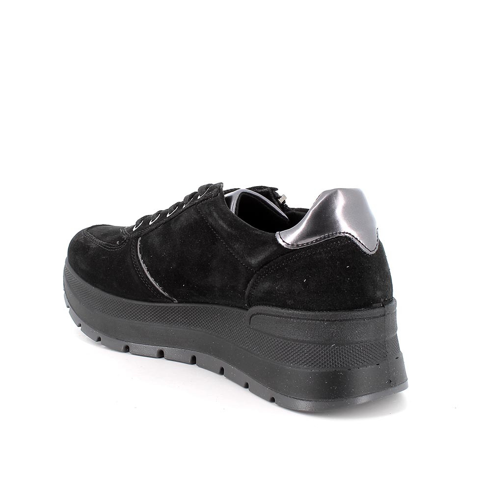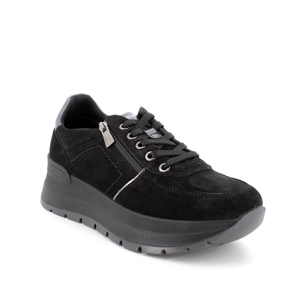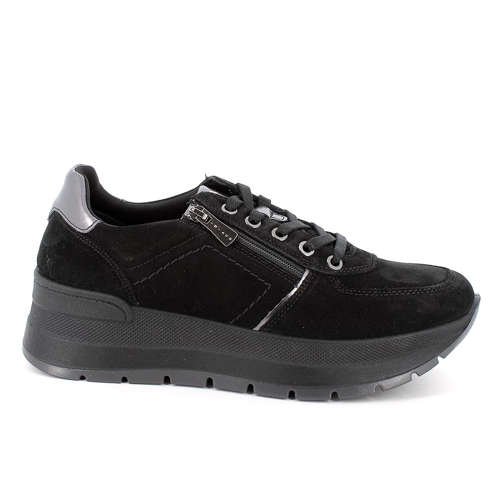 ЖЕНСКИЕ КОЖАНЫЕ КРОССОВКИ НА ТАНКЕТКЕ, ЧЕРНЫЙ
