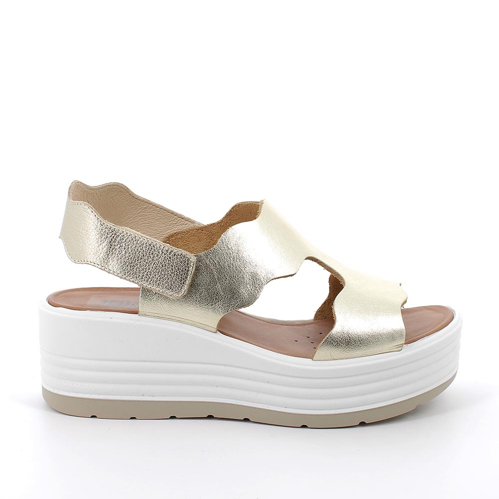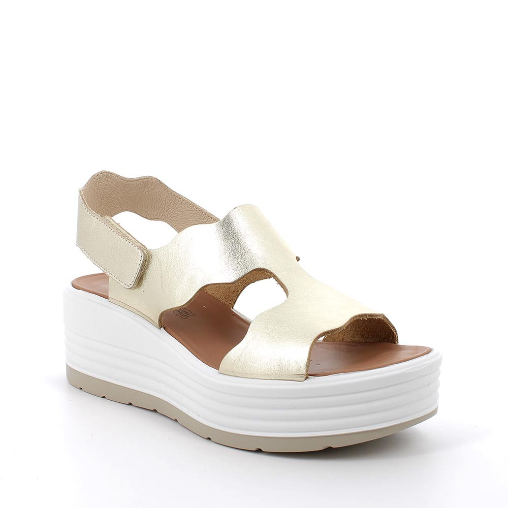 ЖЕНСКИЕ КОЖАНЫЕ САНДАЛИИ НА ТАНКЕТКЕ, ПЛАТИНА