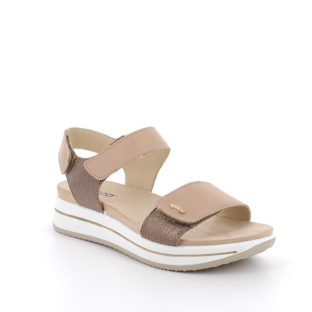 ЖЕНСКИЕ КОЖАНЫЕ САНДАЛИИ НА ТАНКЕТКЕ, КОРИЧНЕВЫЙ/СЕРЫЙ