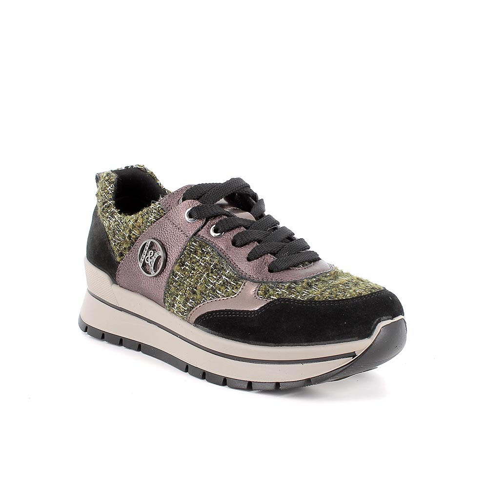 Эти кроссовки с верхом из комбинации кожи с блестящими материалами могут стать хитом сезона. Подошва на танкетке не только актуальна, но и обеспечивает отличную теплоизоляцию. Вырезы на протекторе делают ее гибкой. Подкладка выполнена из мягкой текстильной ткани, которая создает внутри теплую и комфортную среду. Съемная стелька из синтетической пены с эффектом памяти контуров вашей стопы, покрыта натуральной кожей и обеспечивает амортизацию, защищая ногу от напряжения при ходьбе.